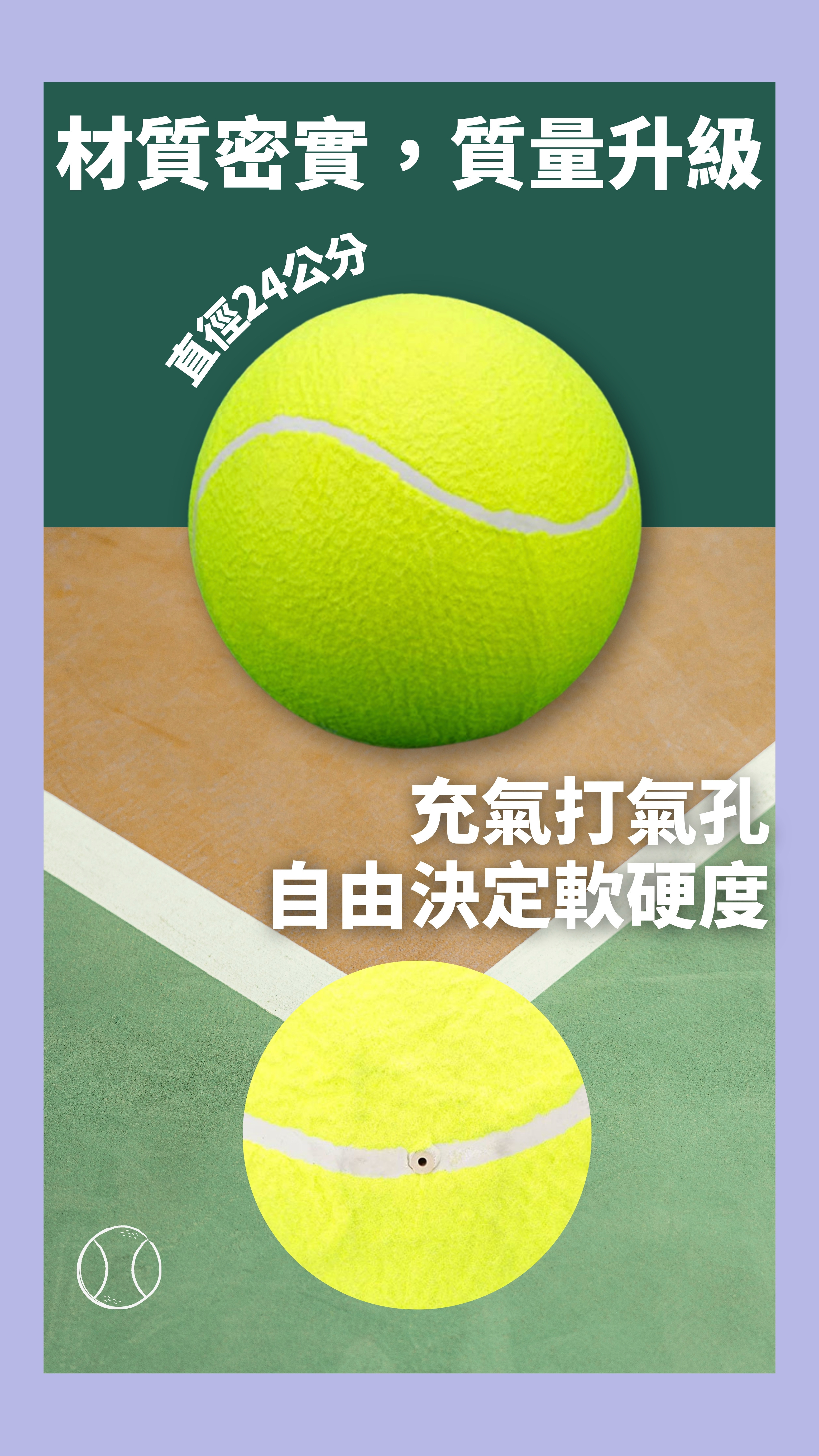 1. 超大尺寸: 直徑 24 公分,1:1 等比例放大網球。