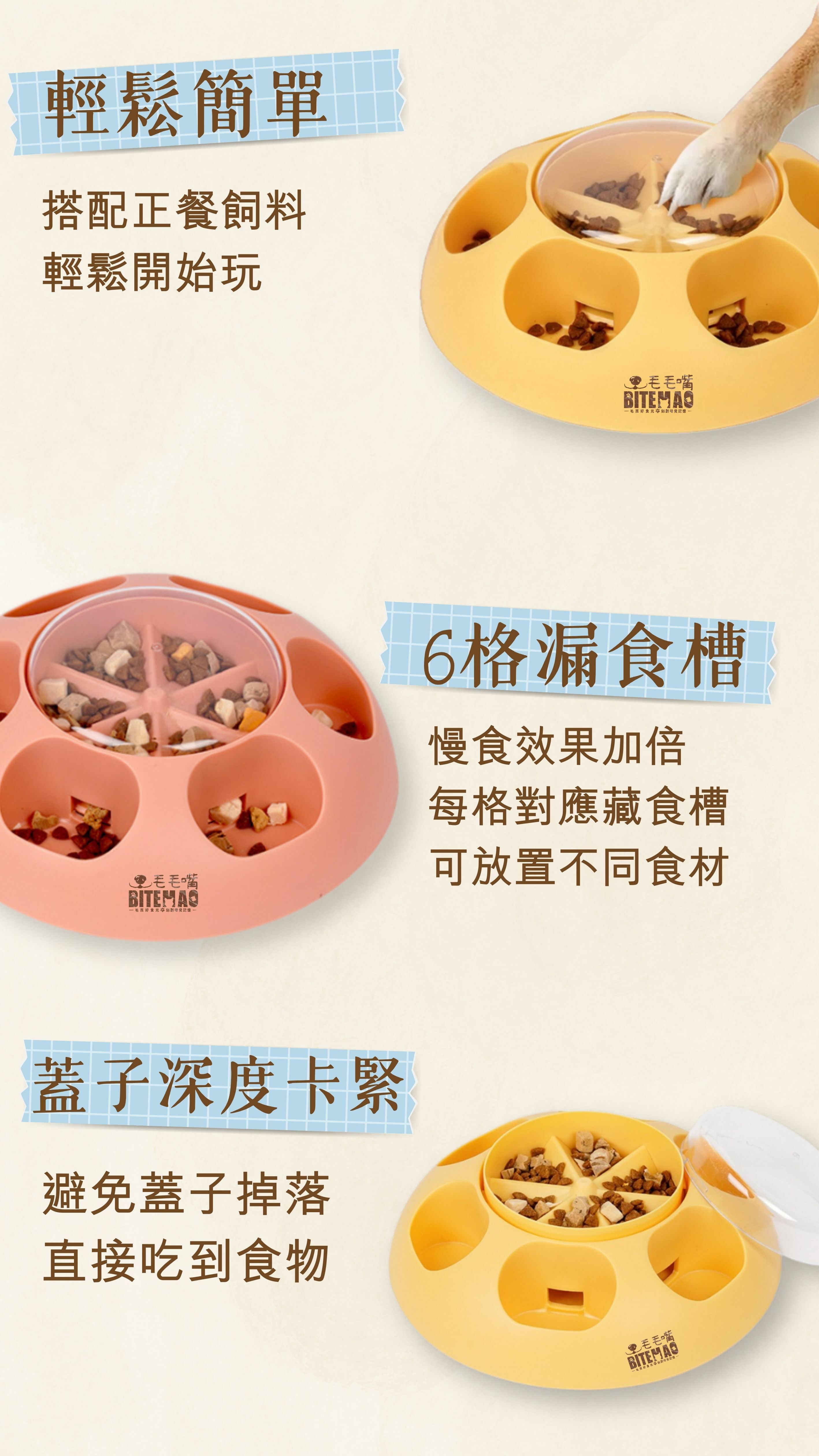 - 六格藏食槽設計:可放置不同種類的零食或飼料 .吃每一格都有驚喜。